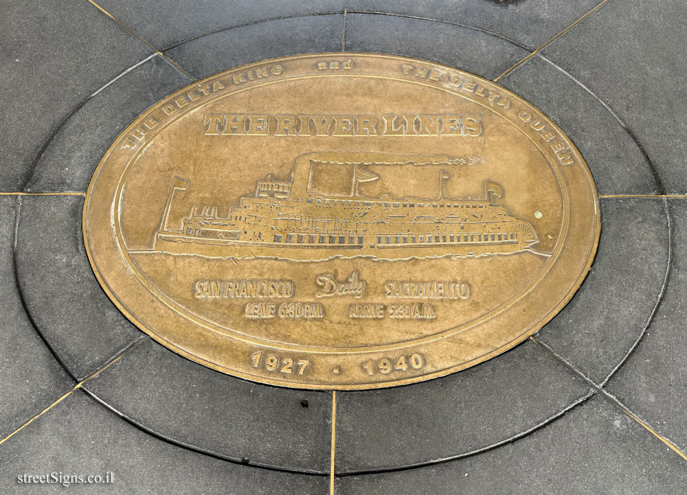 The plaque commemorates the ferry service that operated between San Francisco and Sacramento from 1927-1940.